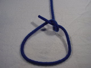 Det bildas en liten ögla på den stående parten och den korta änden är rak igenom denna.